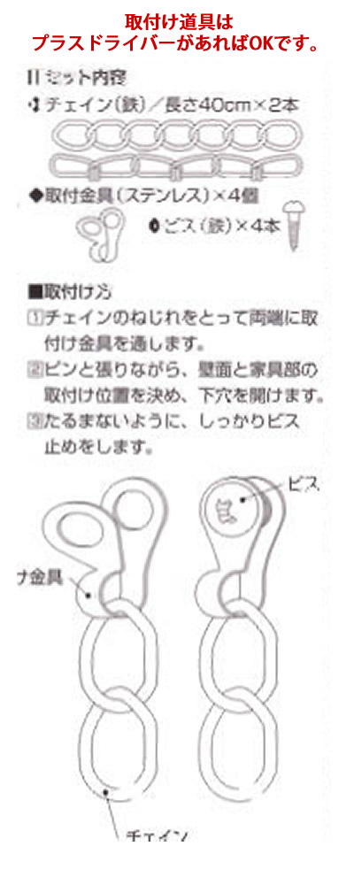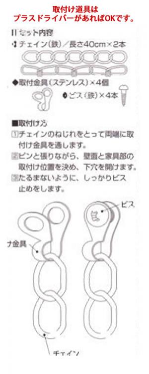 | 内容: | チェイン(鉄)長さ40cm×2本 |
