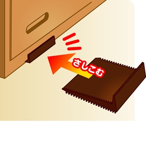タンスや食器棚などの家具にセットすることにより、滑り出しを防ぎ、転倒しにくくします。