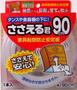 - 家具や食器棚等の下部の前面に差し込み、家具の重心を壁面側に移し転倒しにくくする商品です。