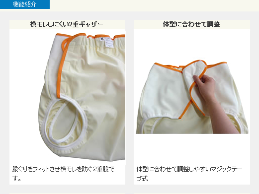 股ぐりをフィットさせ横モレを防ぐ2重股です。