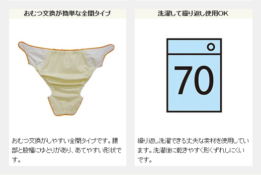 おむつ交換がしやすい全開タイプです。腰部と股幅にゆとりがあり、あてやすい形状です。