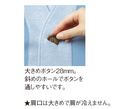 大きめのボタンを使用し、留めはずしがしやすくなっています。
