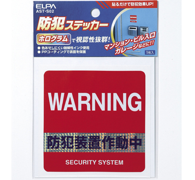 【在庫限り】ELPA 防犯ステッカー 防犯装置作動中 AST-S02