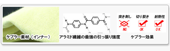 • インナーには米国デュポン社製の、防刃に優れたケブラー繊維を使用