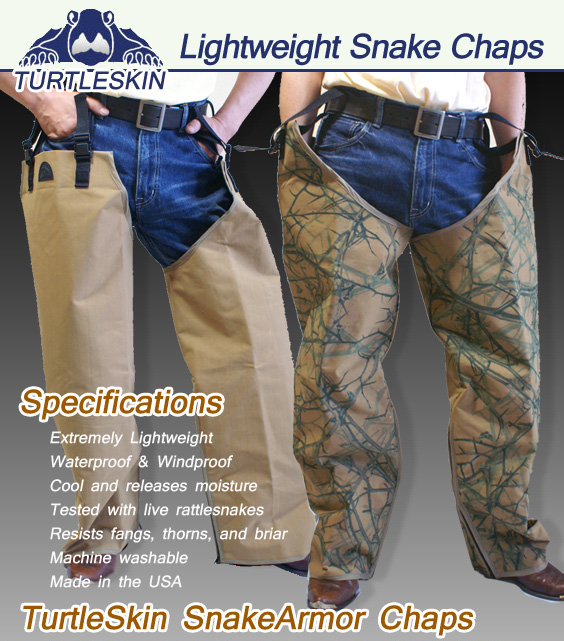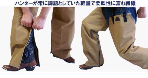 • タートルスキンは全てのハンターが常に課題としていた軽量で柔軟性に富む繊維でトータルプロテクションチャップスを開発しました。
