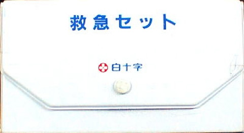 セット内容 コットン球,伸縮ホータイ,綿棒,サージカルテープ,毛抜,ガーゼ,三角巾,絆創膏,ハサミ,「応急手当の方法」