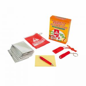 • 携帯便利なPVCケースに緊急時に役立つ5種類の防災アイテムをセットしました。