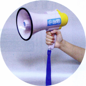 ここは空白です サイレン・録音・再生機能がついた拡声器です。