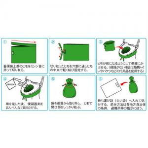 • 野外で使用の場合、持ち運び袋に入れて持ち帰り、便、尿はトイレに流して下さい。