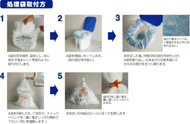 | セット内容 | A袋(汚物処理袋)4枚,吸収シート4枚,B袋(断臭袋)4枚,ストッパーバンド4本 |