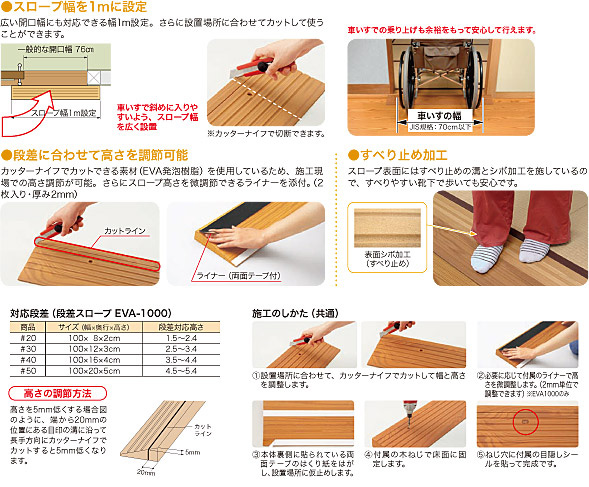 • 間口に合わせてカット調節が可能な1m幅のスロープです。