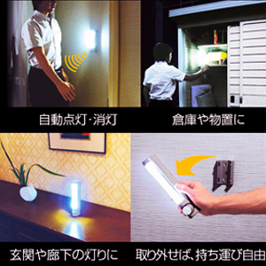 センサーライト・ハンディライトの一台二役!使い方自由!
