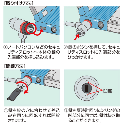 • ノート・デスクトップパソコンのセキュリティスロットに簡単に取り付けできます。