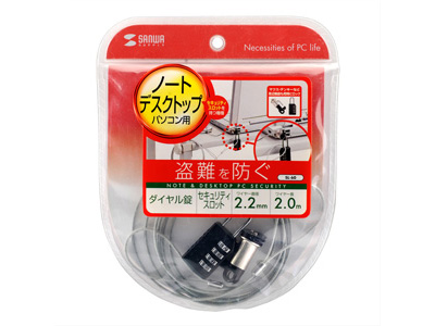 防犯グッズサンワサプライ パソコンセキュリティワイヤーロック(ダイヤル錠タイプ) SL-60