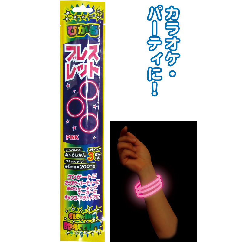 ルミカライト光るブレスレッド3Pピンク直径5×200mm E75213