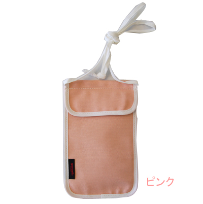 本体、紐などにはやわらかなコットン100%素材を使ったスキミング防止ポーチです。