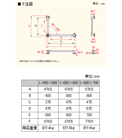 商品名 安寿 セーフティバー L型 L−600×700