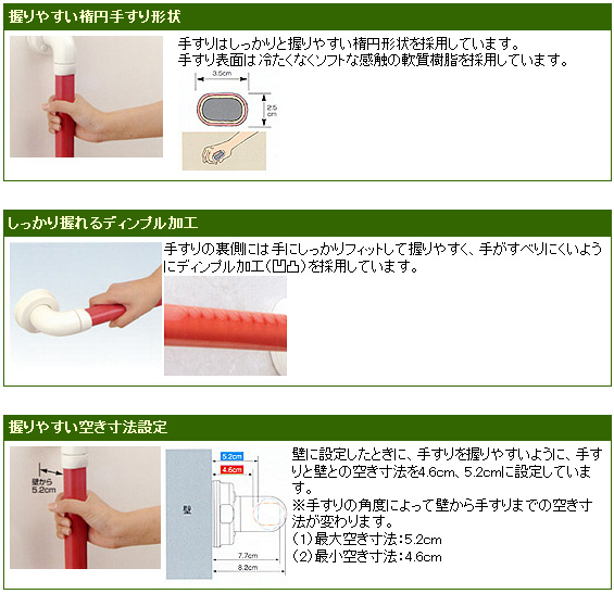 • 握りやすい楕円手すり形状