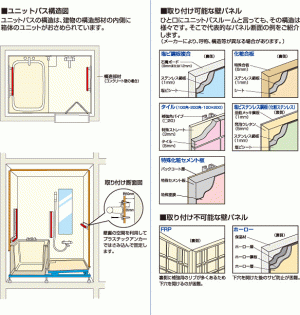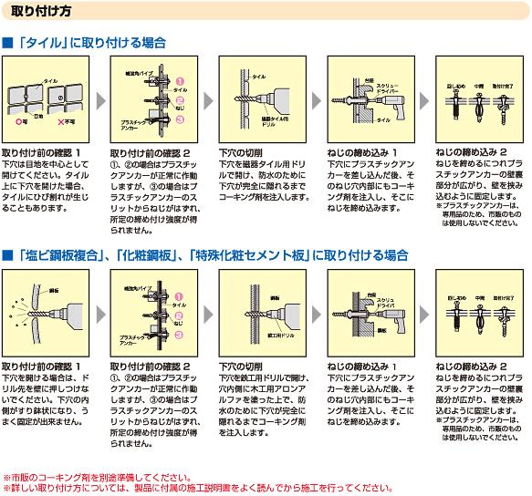 壁面に柱のない薄いユニットバスの壁(10mm前後)に後付けできます。