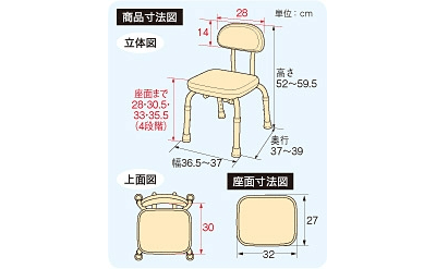 商品サイズ 幅36.5×奥行37×高さ52〜59.5cm