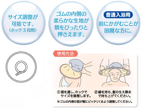 - シャンプー液やすすぎ湯が、目・耳に入りにくく安心です。