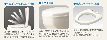 本体、便座とのすき間をなくした被せフタ形状で、便器から上がってくるニオイがもれにくくなっています。
