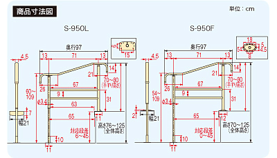 | 材質 | (本体・固定プレート)スチール[メラミン焼付塗装] 、(手すり部)スチール[エラストマー被覆]、(スライド脚)アルミニウム |