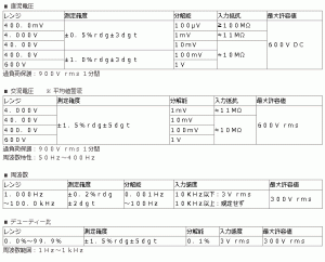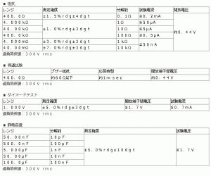| 導通試験 | LCD上にサインおよび約60Ω以下でブザー。(応答時間:1msec.) |