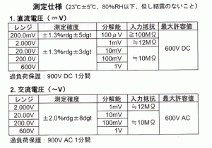 | 表示板(LCD) | 数字表示:31/2桁液晶表示、最大1999、文字高12mm |
