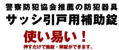 サッシ引戸用補助錠は警察防犯協会推薦の防犯器具です。