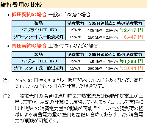 ※一般蛍光灯の場合は点灯時に余熱電流及び始動印加電圧が上昇しますが、左記の計算には反映しておりません。 よって実際にはより多くの消費電力量の削減が可能です。 また空調負荷の軽減による消費電力量の費用も左記に含めておらず、より消費電力の削減が可能です。