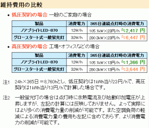 ※24h×365日=8,760hとし、低圧契約は1kWh当り23円/hで、高圧契約は1kWh当り13円/hで計算した場合です。