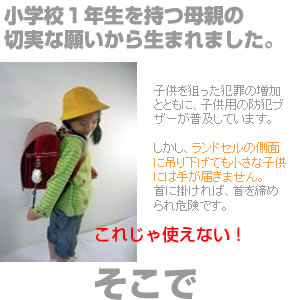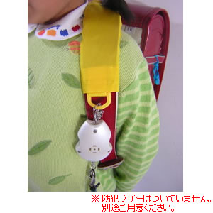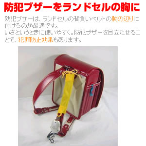 防犯ブザーをランドセルの胸に