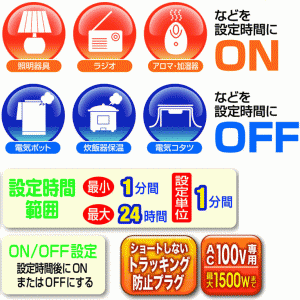 • 電器ポット、炊飯器保温、電器コタツなどを設定時間にOFF