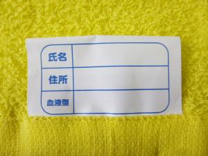 • タオル本体に「氏名・住所・血液型」を記入できる縫込みネーム付き。
