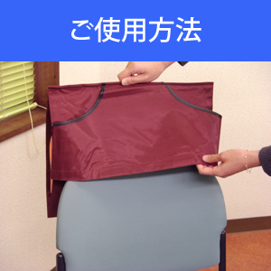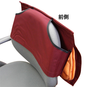 防災頭巾を収納してイスの背に掛けておくことができます。緊急の時にもすぐに取りだせるので安心です。