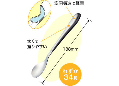 - 柄部は太めで握りやすくなっていますが、空洞構造のため非常に軽く、力のない方にも負担をかけません。