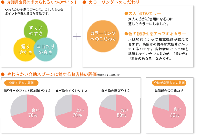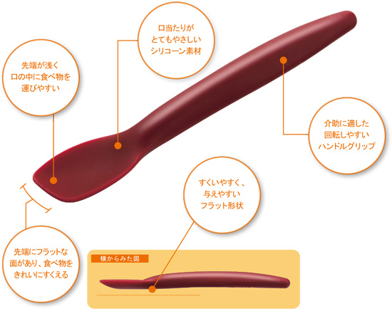 グリップも、スムーズな食事介助をサポートする、手が回転しやすいカタチです。