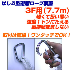 ここは空白です 取付が簡単な避難用縄ばしご。3F用。7.7メートル。