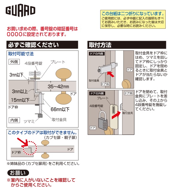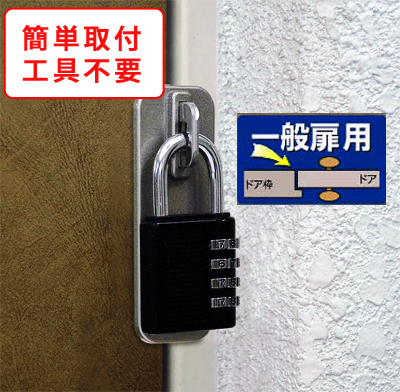 ここは空白です 外開きの一枚扉(一般扉)に錠前を取り付けるための金具です。<4段番号錠セット>