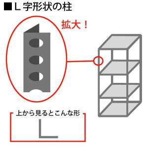 • 柱がL字形状で前面に穴のあるタイプのオープン棚に取り付けできます。