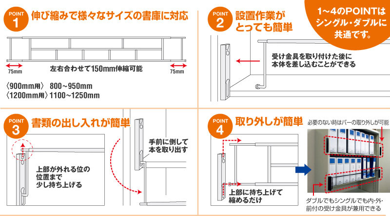 書類落下防止バー タフガードダブル 900mm 外付用 TGW-90S