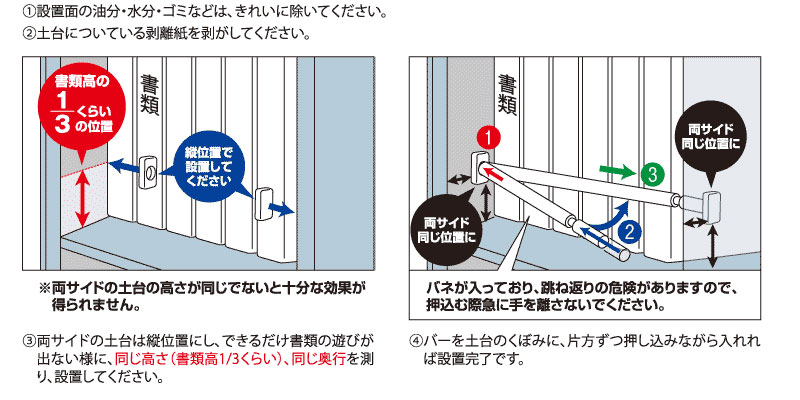 手軽に耐震!地震時の書類の飛び出し・飛散防止!