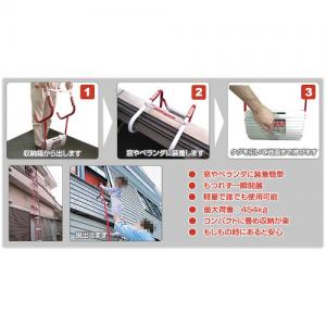 - 約7.6メートルの長さがあるため、通常家屋の3階なら地面まで十分な長さがあります。