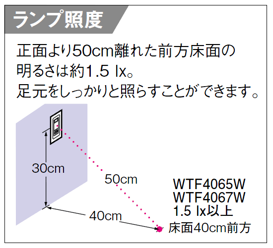 - 従来品(WTF40504W)よりも床面の明るさが20%アップ。