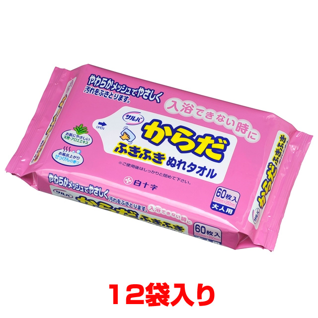 白十字 サルバからだふきふきぬれタオル60枚入×12袋(720枚)