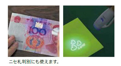ペンに付いているライトで照らすと文字が浮き上がる。