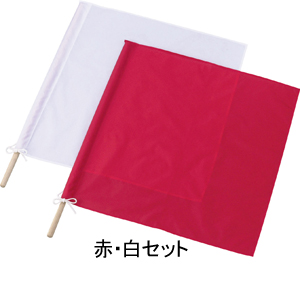 商品名 信号手旗(棒付き) 50×50cm ナイロン <赤・白セット>