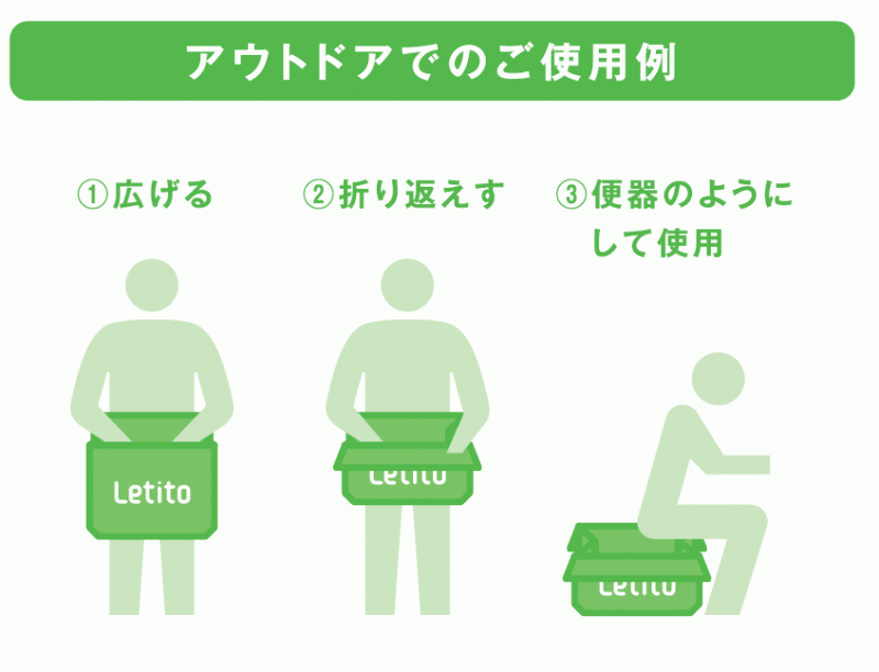 | ・ | レティットは災害時や緊急時の排泄物・汚物などを衛生的に処分ができます。 |