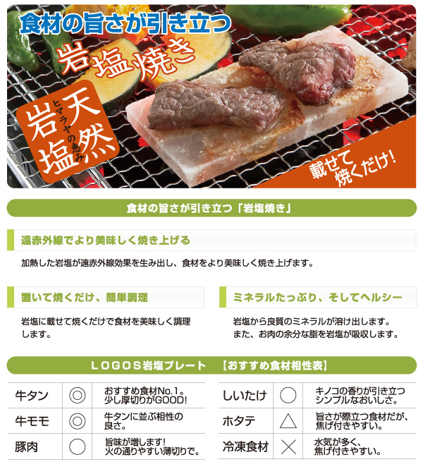 ここは空白です 焼き網に載せて焼くだけ!食材の旨さが引き立つ、岩塩プレートです。